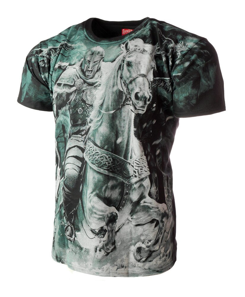 Nordycka z motywem Vikingów koszulka wykonana przez polskiego producenta odzieży - Aquila. Podczas projektowania oraz wykonania koszulki zadbano o jej najdrobniejsze detale. Nadruk na koszulce wykonany został przy pomocy sitodruku. Jest bardzo trwały i nie ulega zniszczeniu podczas użytkowania. Produkt należy prać w temperaturze nie przekraczającej 40 stopni, pozwoli to zdecydowanie dłużej zachować trałość nadruku.