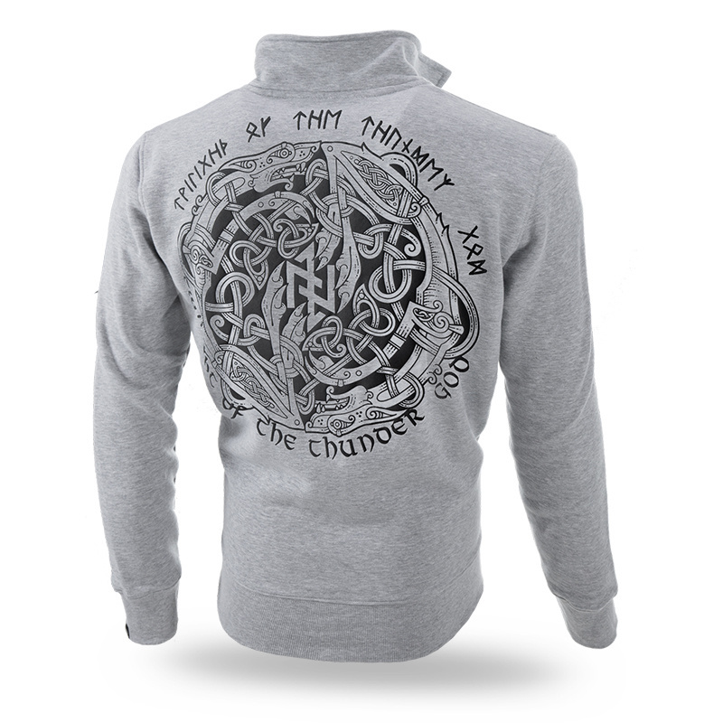 Bluza classic z zamkiem oraz stójką. Wykonana z wysokiej jakości bawełny, zakończona ściągaczami, z dwoma kieszeniami z przodu. Na lewym rękawie mała metka z logo marki. Mystical Circle to duży nadruk w postaci 3D na plecach przedstawiający celtycki krąg z wilkiem oraz logo Doberman’s Aggressive połączone w jednolity wzór. Przód bluzy ozdobiony symbolem runicznym.
