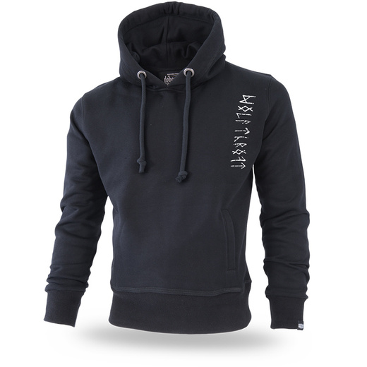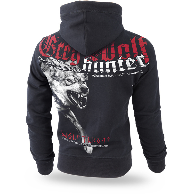 Wkładana przez głowę, męska bluza wykonana z wysokiej jakości bawełny o masie 200g. Plecy bluzy w znacznym stopniu są pokryte nadrukiem. Grafika ta to wściekły wilk gotowy do ataku. Pomiędzy ramionami znajduje się napis Grey Wolf - przechodzi on przez szwy rękawów. Na przodzie zastosowano symbole runiczne nadrukowane tuż przy rękawie. Bluza posiada szeroki ściągacz na dole oraz wszytą metkę z logo marki. Obszerny kaptur można regulować za pomocą dwóch sznurków.