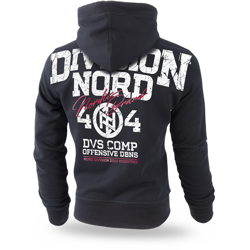 Męska bluza z kapturem i obszerną, naszywaną kieszenią typu kangurka. Przy kapturze sznurki z metalowymi okuciami. Dół i rękawy wykończone ściągaczem. Bluza wykonana z wysokogatunkowej, stuprocentowej bawełny o masie 320g. Na lewej piersi niewielki nadruk. Plecy zostały ozdobione dużą grafiką z efektem zniszczeń. Wzór składa się z napisów związanych z marką. Największy napis Division przechodzi przez szwy rękawów. Poniżej liczba 404 ze znakiem runicznym. Grafika została wykonana w dwóch kolorach.