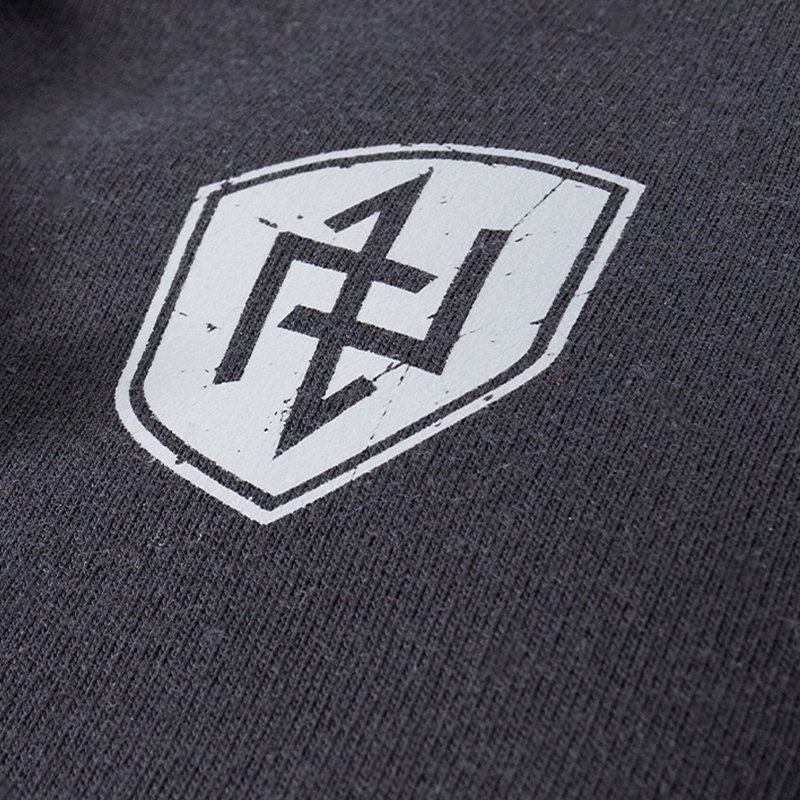 Bluza kangurka z kapturem, wykonana z bawełny o wysokiej gramaturze. Na lewym rękawie mała metka z logo marki. Na plecach znajduje się grafika tarczy oraz duży napis DOBERMAN’S Dominus Vitae Necisque . Na lewej piersi umieszczono mały nadruk w postaci tarczy ze znakiem runicznym.