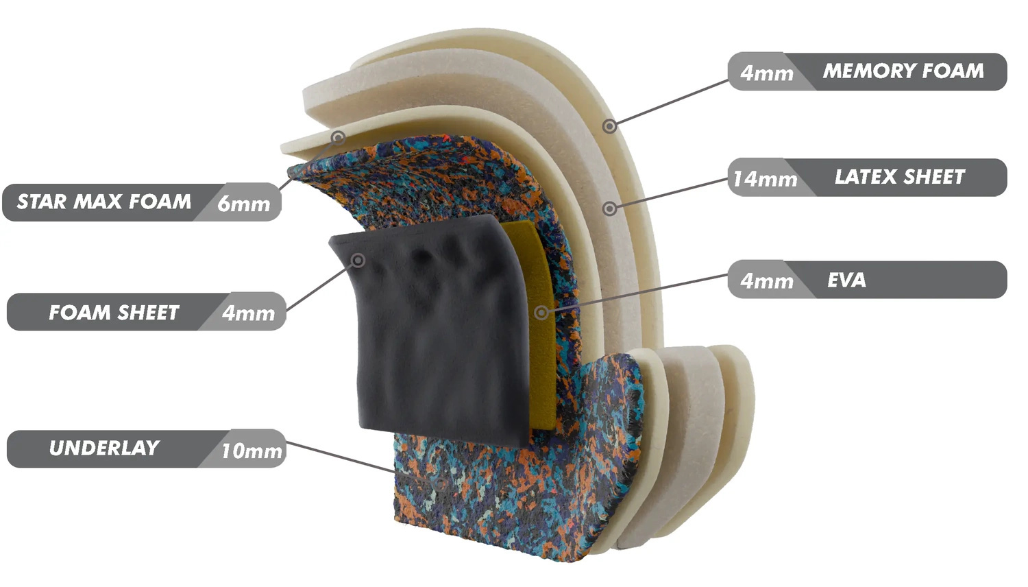 Wypełnienie rękawicy zostało wykonane z aż 6 warstw różnych warstw pianek tak aby zapewnić najwyższy poziom trwałości oraz optymalnej amortyzacji siły uderzeń.