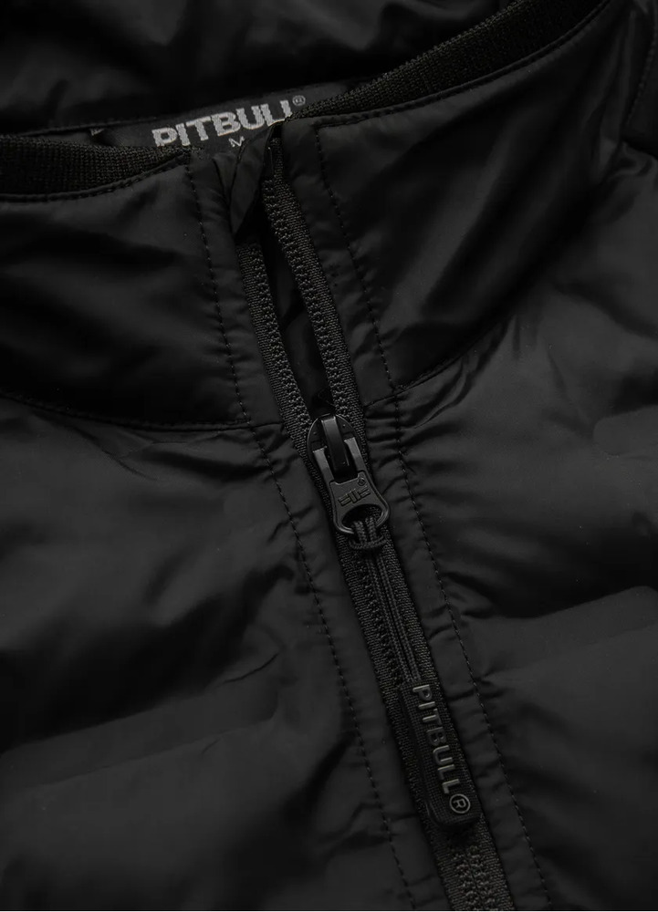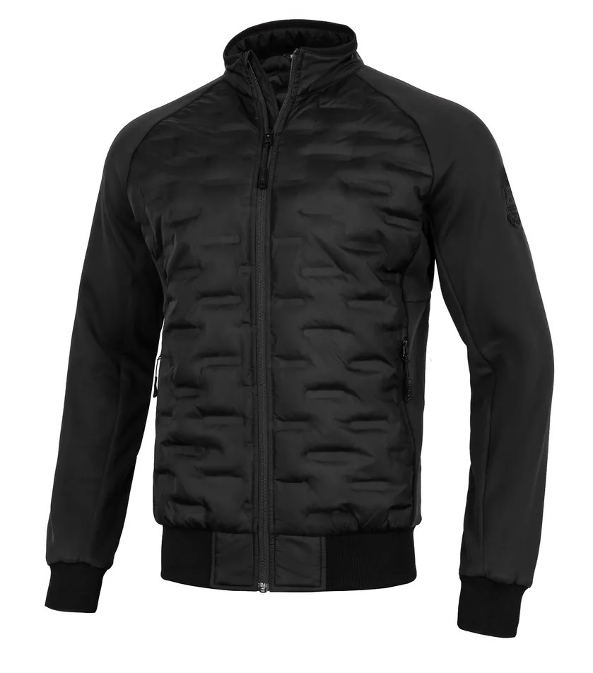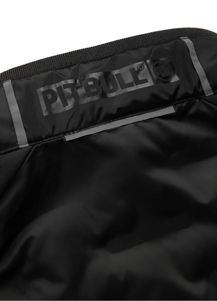 - silikonowa okrągła naszywka na lewym rękawie z napisem i logo marki PitBull