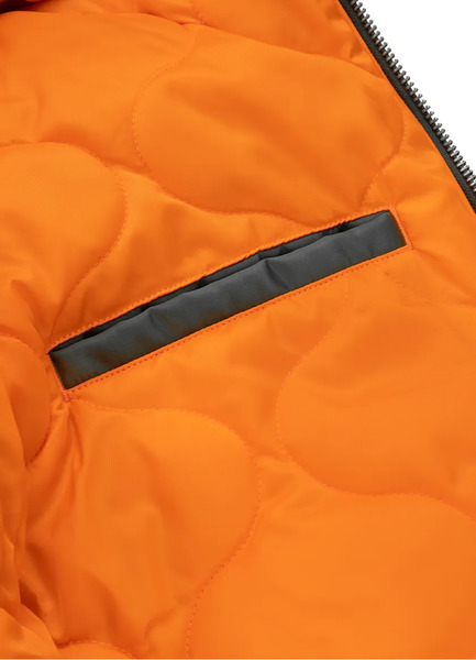 - pikowana podszewka w kontrastowym pomarańczowym kolorze pod którą znajduje się warstwa ocieplająca