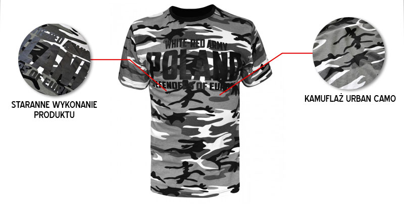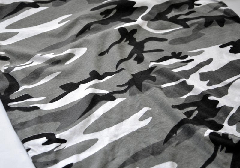 Dyskretny nadruk na kamuflażu Urban Camo wykonany został przy pomocy sitodruku.
