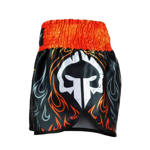 Spodenki Muay Thai Flames to model, który wyróżnia się oryginalnym wzornictwem i jakością wykonania. Oddychający i lekki materiał zapewnia komfort podczas treningu. Charakterystyczny krój spodenek Muay Thai z krótkimi i szerokimi nogawkami gwarantuje maksymalną swobodę ruchów podczas kopnięć i uderzeń kolanami. Typowy w tajskim boksie szeroki, marszczony pas spodenek świetnie dopasowuje się do ciała.