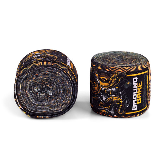 Wygodne i wytrzymałe owijki bokserskie z sublimowanym wzorem. Szeroki płaski rzep gwarantuje mocne zapięcie i komfort nawet podczas długich, intensywnych treningów. Materiał, z którego wykonane są bandaże bokserskie to połączenie bawełny i poliestru, które zapewnia dłuższą żywotność i minimalną elastyczność taśmy oraz doskonałe dopasowanie owijek do dłoni.