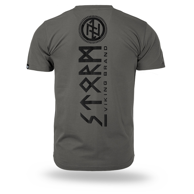 Koszulka męska z krótkim rękawem w klasycznym fasonie.Odzież wykonana z bawełny o gramaturze 200g. Na lewym rękawku mała metka z logo Doberman’s Aggressive. Na plecach znajduję się napis STORM VIKING BRAND, oraz symbol nordycki wykonany metodą druku puchnącego. Z przodu koszulki na piersi mniejsza grafika nawiązująca do głównego motywu.