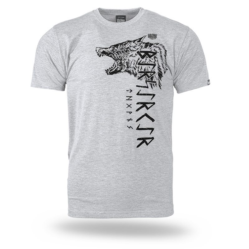 Koszulka męska z krótkim rękawem w klasycznym fasonie. Odzież wykonana z bawełny o gramaturze 200g. Na lewym rękawku mała metka z logo Doberman’s Aggressive. Z przodu koszulki grafika przedstawiająca głowę wilka z otwartą paszczą. Całość uzupełnia napis BERSERKER wykonany wzdłuż koszulki, oraz małe logo marki.