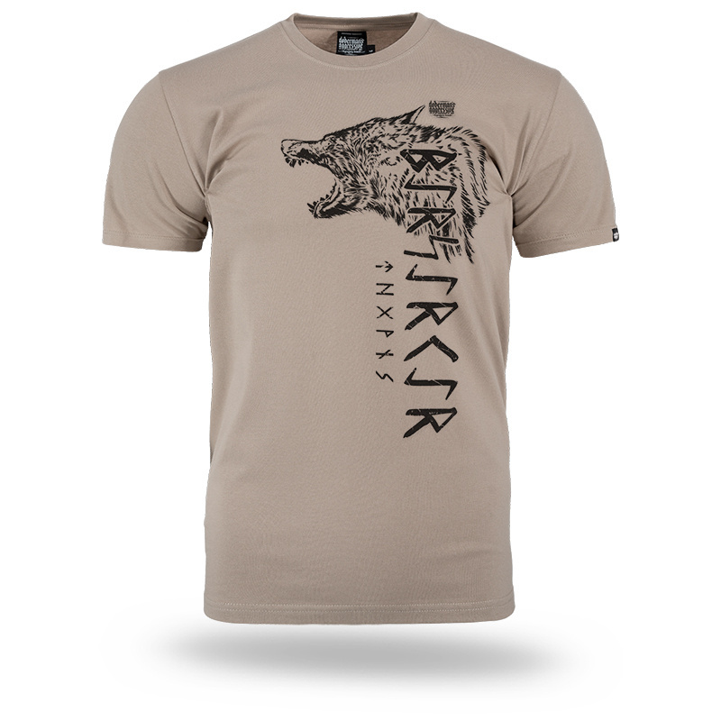 Koszulka męska z krótkim rękawem w klasycznym fasonie. Odzież wykonana z bawełny o gramaturze 200g. Na lewym rękawku mała metka z logo Doberman’s Aggressive. Z przodu koszulki grafika przedstawiająca głowę wilka z otwartą paszczą. Całość uzupełnia napis BERSERKER wykonany wzdłuż koszulki, oraz małe logo marki.