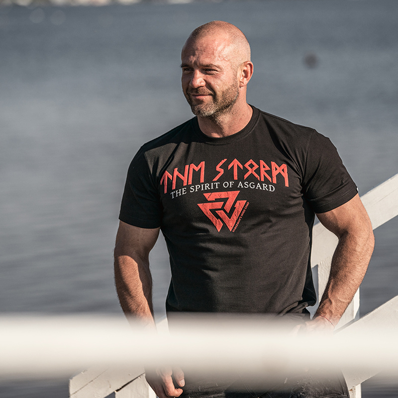 Model został wykonany z wysokiej jakości bawełny o masie 200g. Rękawki wykończone wąskim ściągaczem. Na przodzie koszulki znajdują się runy oraz napis „The spirit of Asgard” wykonane drukiem wypukłym.