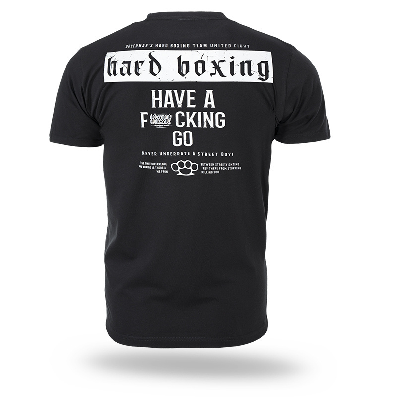 Wykonana z bawełny o wysokiej gramaturze. Na lewym rękawie wszyta mała metka z logo marki. Model z mocnym przekazem, z tyłu koszulki grafika z napisem Hard Boxing – Have A F*cking. Przód nawiązujący do głównego motywu.