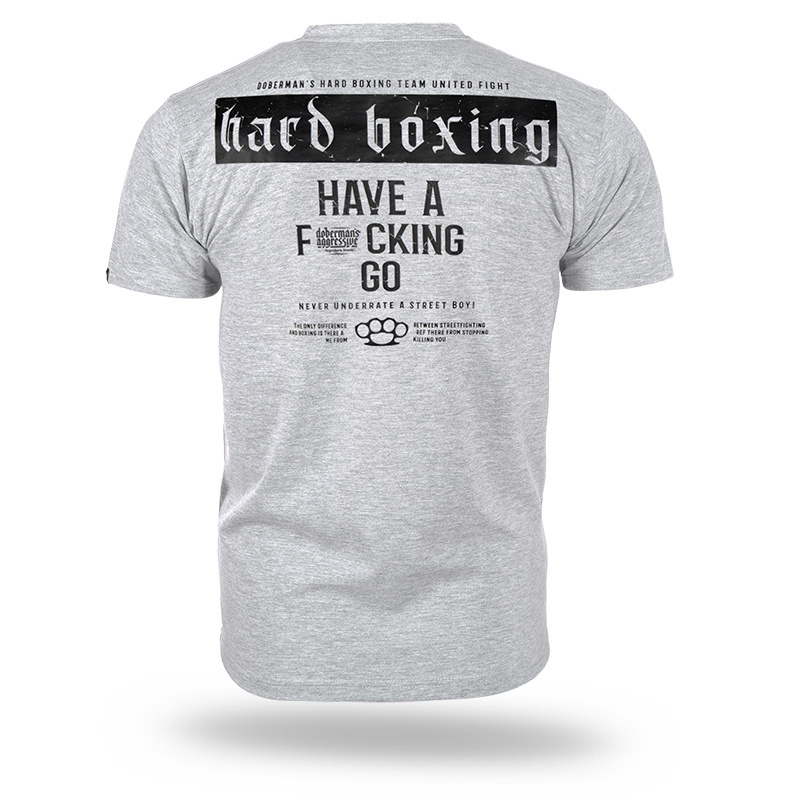 Wykonana z bawełny o wysokiej gramaturze. Na lewym rękawie wszyta mała metka z logo marki. Model z mocnym przekazem, z tyłu koszulki grafika z napisem Hard Boxing – Have A F*cking. Przód nawiązujący do głównego motywu.