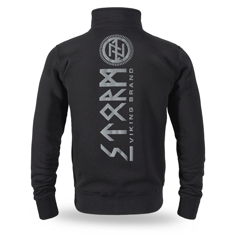 Dwie kieszenie na froncie, na lewym rękawie mała metka z logo Dobermans Aggressive. Dół bluzy i rękawy zakończone mocnymi ściągaczami. Bluza wykonana została z wysokiej jakości bawełny. Na plecach znajduję się napis STORM VIKING BRAND, oraz symbol nordycki wykonany metodą druku puchnącego. Z przodu bluzy na piersi mała naszywka haftowana nawiązująca do głównego motywu.