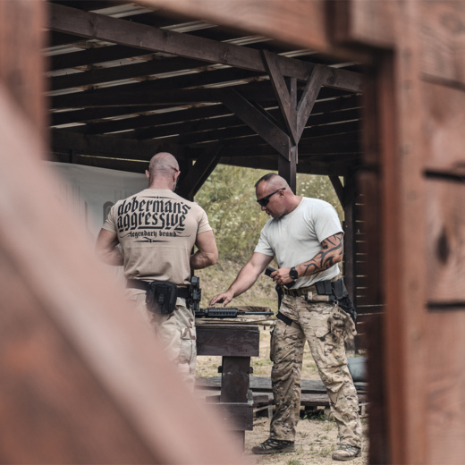 Dwie kieszenie na froncie, na lewym rękawie mała metka z logo Dobermans Aggressive. Dół bluzy i rękawy zakończone mocnymi ściągaczami. Bluza wykonana została z wysokiej jakości bawełny. Zarówno z przodu i z tyłu bluzy znajduję się logo marki wykonane metodą druku puchnącego. Plecy pokryte są dużym logo Doberman’s, natomiast z przodu logo jest w mniejszym rozmiarze.