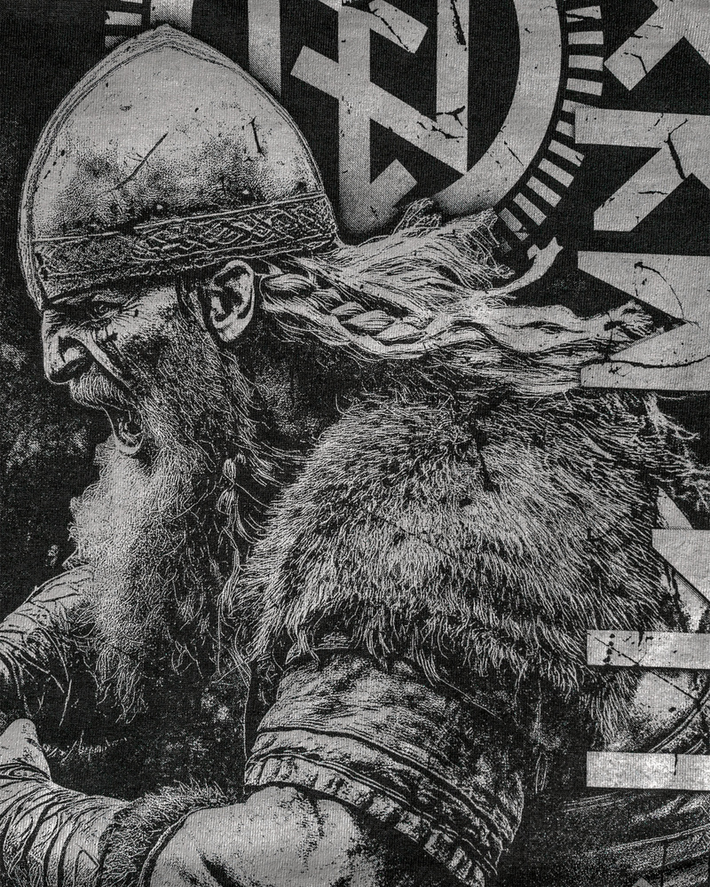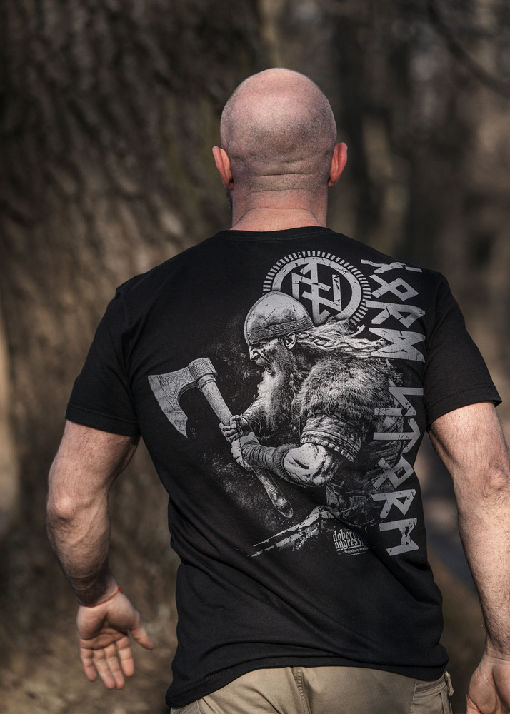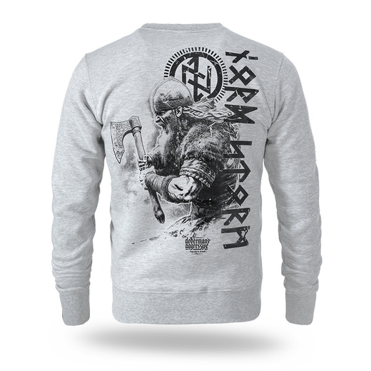 Klasyczna bluza z efektownym nadrukiem na plecach, przedstawiającym wikinga w dynamicznej pozie, gotowego do walki z toporem. Przód ozdobiony minimalistycznym napisem STORM w stylu runicznym. Wykonana z wysokiej jakości materiału, gwarantującego komfort noszenia i trwałość.