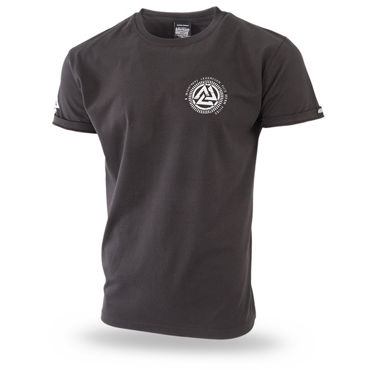 T-shirt Dobermans Ulfhedinn posiada wąski ściągacz przy szyi oraz małą metkę z logo producenta na lewym rękawie. W środku na karku wszyta jest metka żakardowa.