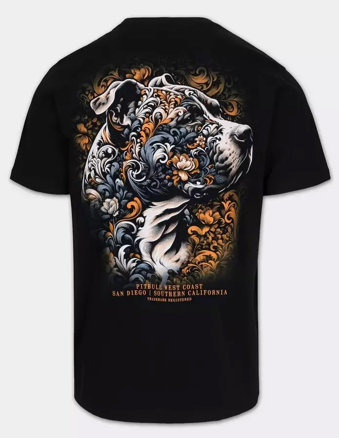 Prawdziwym atutem tego modelu jest jednak imponująca grafika na plecach, przedstawiająca głowę pitbulla wplecioną w misterne, roślinne ornamenty przypominające klasyczny tatuaż. Całość utrzymana jest w stonowanej kolorystyce czerni, bieli i złota, co nadaje ubraniu ekskluzywnego charakteru. Regularny krój koszulki doskonale dopasowuje się do sylwetki, nie krępując ruchów, dzięki czemu model ten świetnie sprawdzi się zarówno w codziennych stylizacjach, jak i podczas aktywności fizycznej. Wybierając ten produkt, stawiasz na oryginalny design San Diego Southern California, który podkreśli Twój silny charakter i pasję do kultury tatuażu oraz sportów walki.