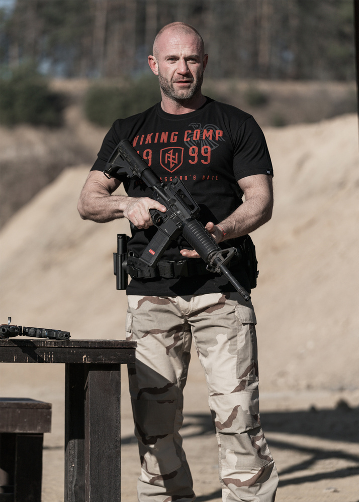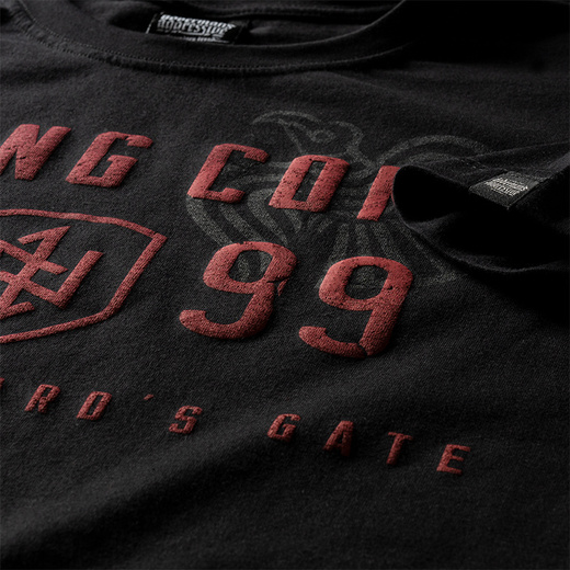Wykonany z wysokiej jakości bawełny, zapewniającej komfort noszenia. Na przodzie nadruk w stylu nordyckim z napisem "VIKING COMP 1999", symbolem tarczy oraz dodatkowym hasłem "MIGHTY ASGARD'S GATE". Dyskretny, półprzezroczysty motyw wikingów dodaje charakteru. Tył koszulki gładki, bez nadruku.