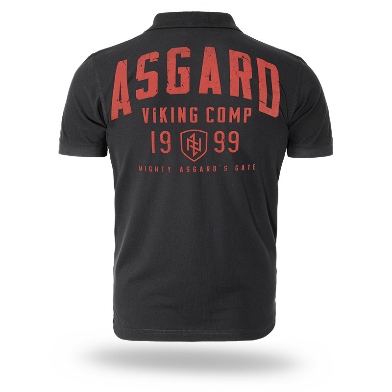 Wykonana z wysokiej jakości materiału, zapewniającego komfort i trwałość. Na plecach umieszczono duży nadruk nawiązujący do motywu nordyckiego, z wyróżniającym się napisem „ASGARD” i symboliką wikingów. Przód koszulki pozostaje jednolity, bez dodatkowych grafik. Klasyczny fason polo nadaje jej uniwersalny charakter, idealny zarówno na co dzień, jak i w bardziej casualowych stylizacjach.