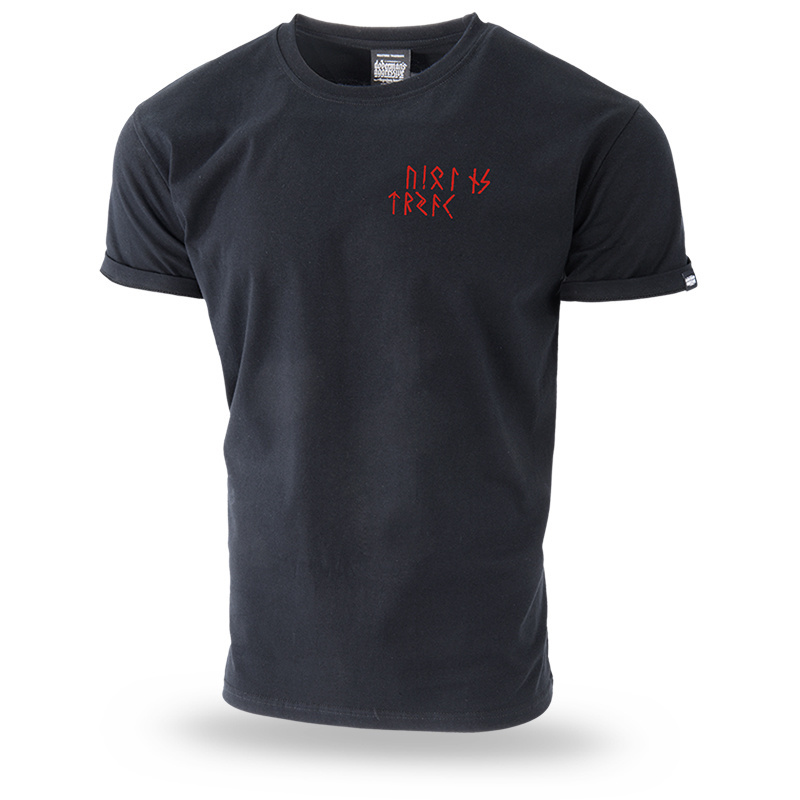 Widoczne czerwone akcenty w postaci wewnętrznej plisy oraz bocznej wszywki z logotypem marki. Na froncie symbole runiczne. Z tyłu koszulki dwukolorowa grafika z głową niedźwiedzia i półokrągłym napisem Berserk przebiegającym przez szwy rękawów. Użyto czcionki w stylu gotyckim. Nadruk zajmuje znaczną powierzchnię tkaniny.