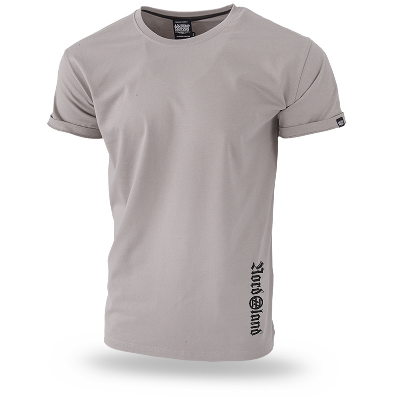 T-shirt z grafiką w stylu skandynawskim. Na plecach nadruk o znacznej powierzchni, przedstawiający wikinga-wojownika z toporem. Poniżej napis Viking Company w formie łuku, niewielka tarczka ze znakami runicznymi oraz data 793. Na łopatkach duże hasło Nordland, przechodzące przez oba szwy rękawów i powtórzone na froncie koszulki w postaci niewielkiego, pionowego nadruku umieszczonego wzdłuż lewego szwu. Koszulka męska z krótkim rękawem, wyprodukowana ze stuprocentowej bawełny wysokiego gatunku.