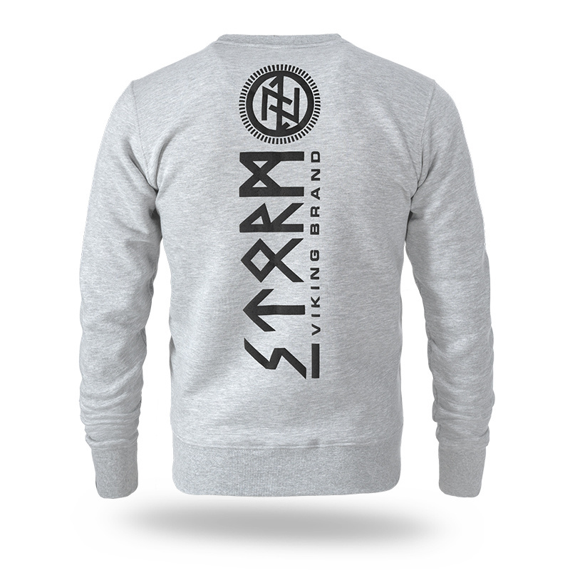 Wygodna bluza wykonana z wysokogatunkowej bawełny. Na lewym rękawie wszyta mała metka z logo marki. Dół bluzy oraz rękawów wykończone szerokim ściągaczem. Na plecach znajduję się napis STORM VIKING BRAND, oraz symbol nordycki wykonany metodą druku puchnącego. Z przodu bluzy na piersi mała naszywka haftowana nawiązująca do głównego motywu.