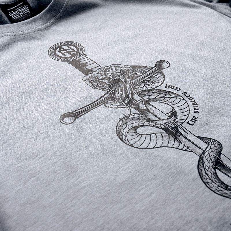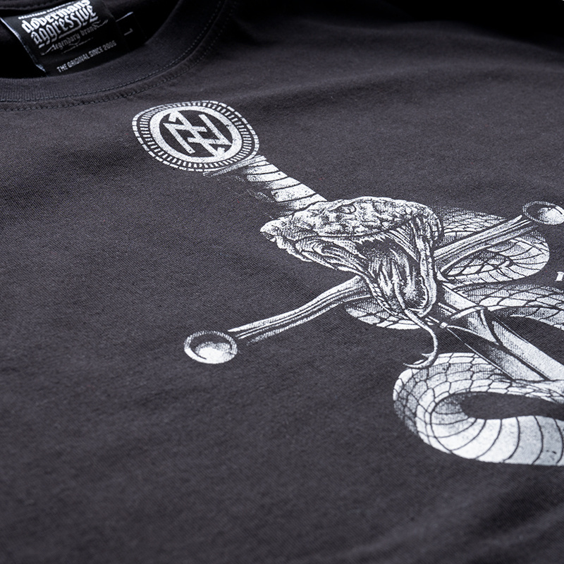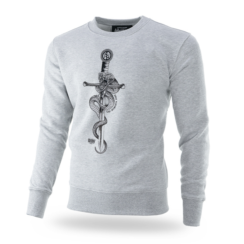 Wykonana z wysokiej jakości bawełny o gramaturze 320g. Na lewym rękawie wszyta mała metka z logo marki. Dół bluzy oraz rękawów wykończone szerokim ściągaczem. Na przodzie bluzy znajduje się postać węża oplatającego miecz. Grafikę uzupełnia dopisek The Serpent’s Trail.