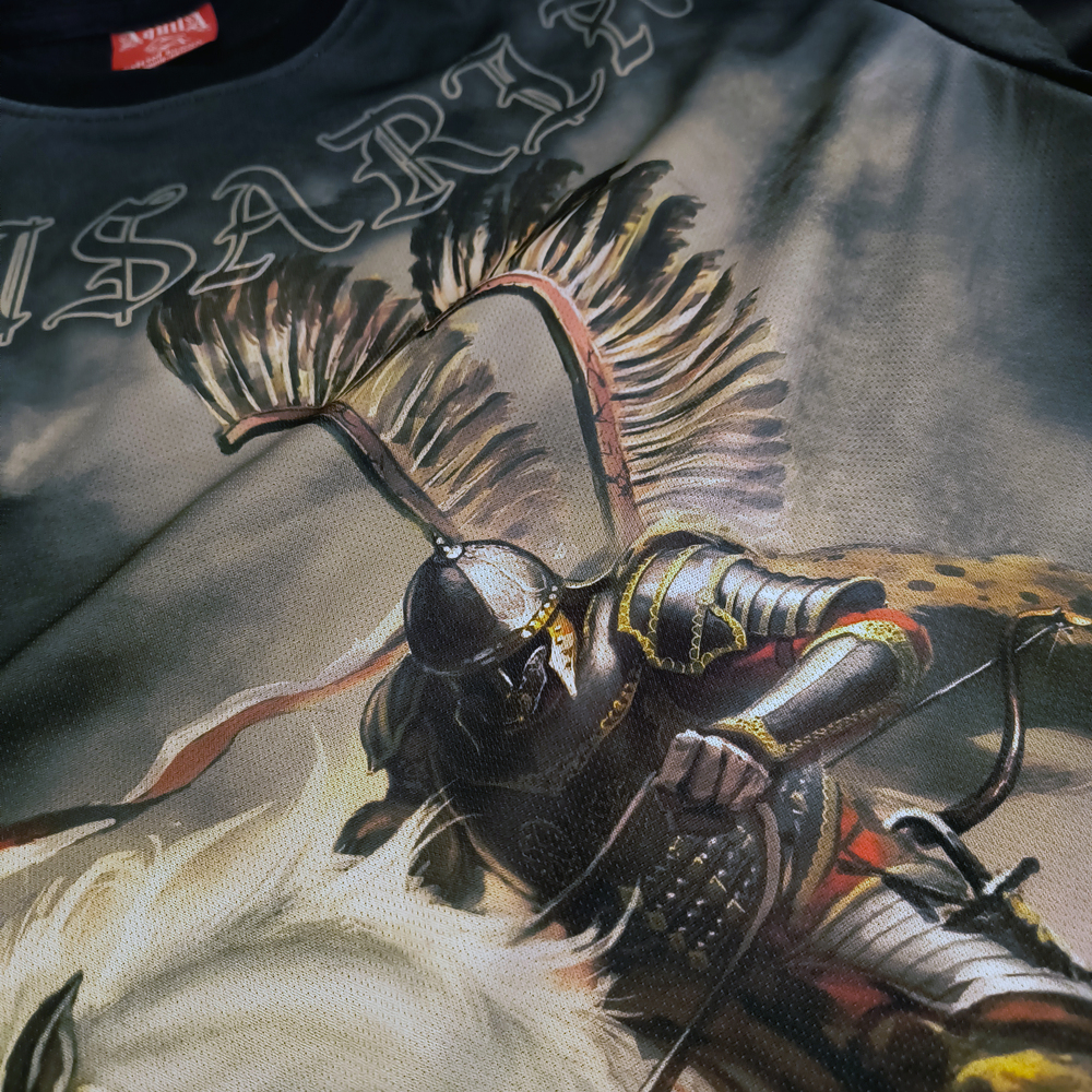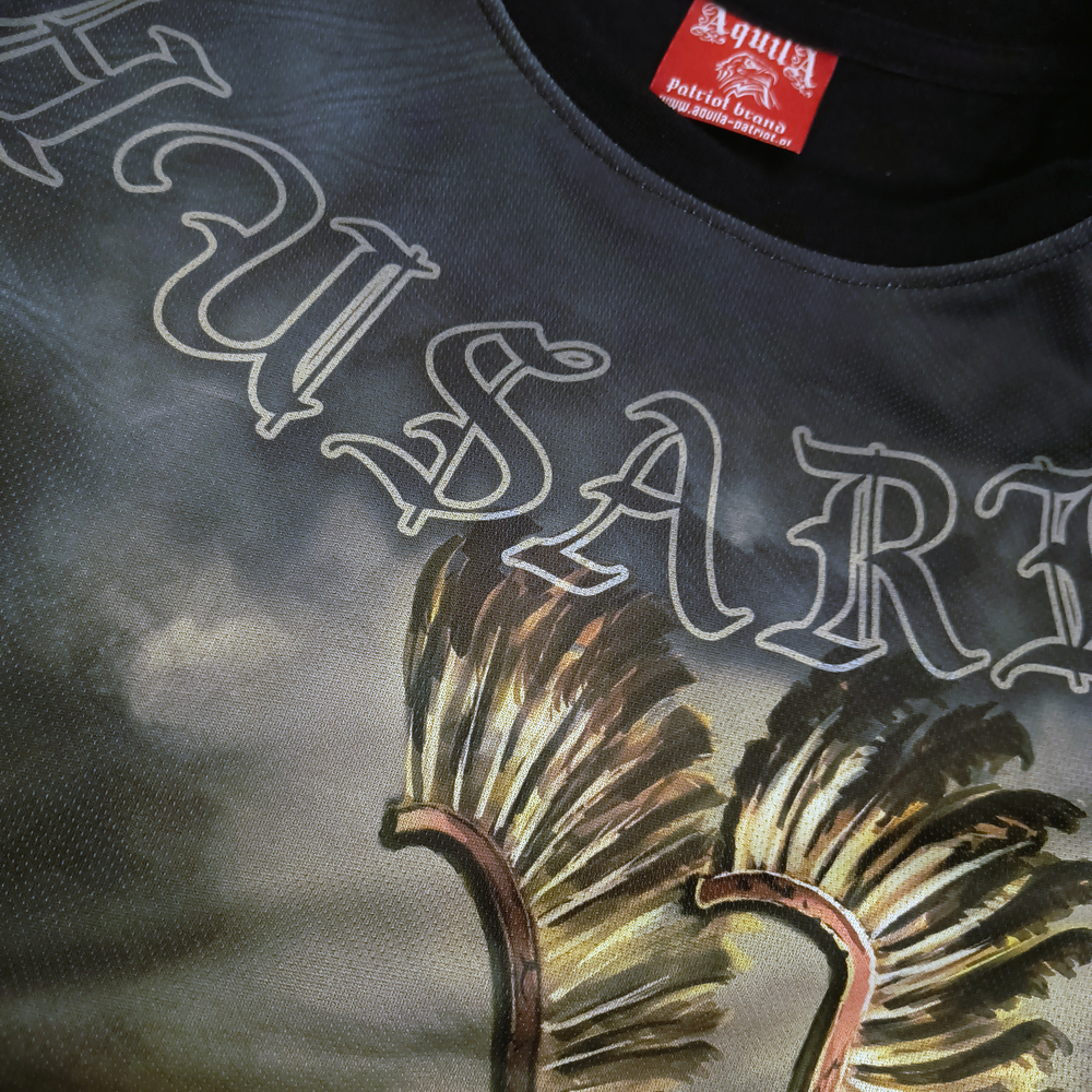 Wyjątkowa koszulka patriotyczna z motywem Husarii. Wykonana z czarnej, wysokogatunkowej bawełny przez polskiego producenta odzieży. Podczas projektowania oraz wykonania koszulki zadbano o jej najdrobniejsze detale. Nadruk na koszulce wykonany został przy pomocy sublimacji. Jest bardzo trwały i nie ulega zniszczeniu podczas użytkowania. Produkt należy prać w temperaturze nie przekraczającej 40 stopni, pozwoli to zdecydowanie dłużej zachować trałość nadruku.