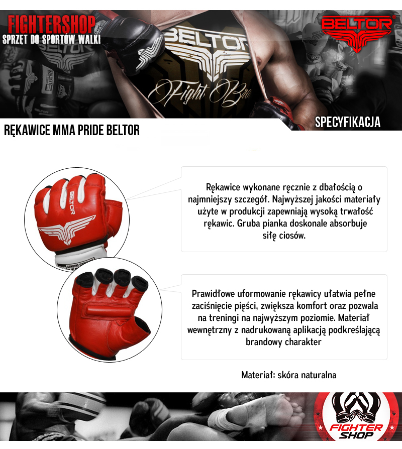 Strona główna / Sprzęt sporty walki / Rękawice MMA / Grappling / Skóra naturalna / Rękawice MMA Pride Beltor - czerwono/czarne