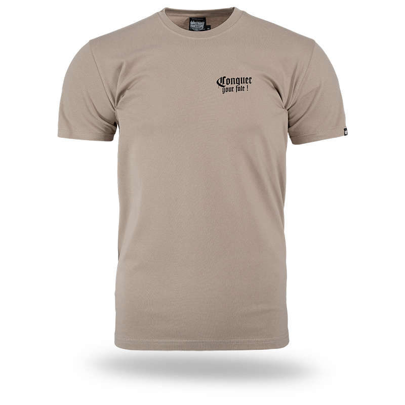 Koszulka męska z krótkim rękawem w klasycznym fasonie. Odzież wykonana z bawełny o gramaturze 200g. Na lewym rękawku mała metka z logo Doberman’s Aggressive. Na plecach znajduję się duża grafika Vikinga trzymającego topór, całość uzupełnia napis Northman Conquer your fate. Z przodu koszulki mniejsza grafika nawiązująca do głównego motywu.