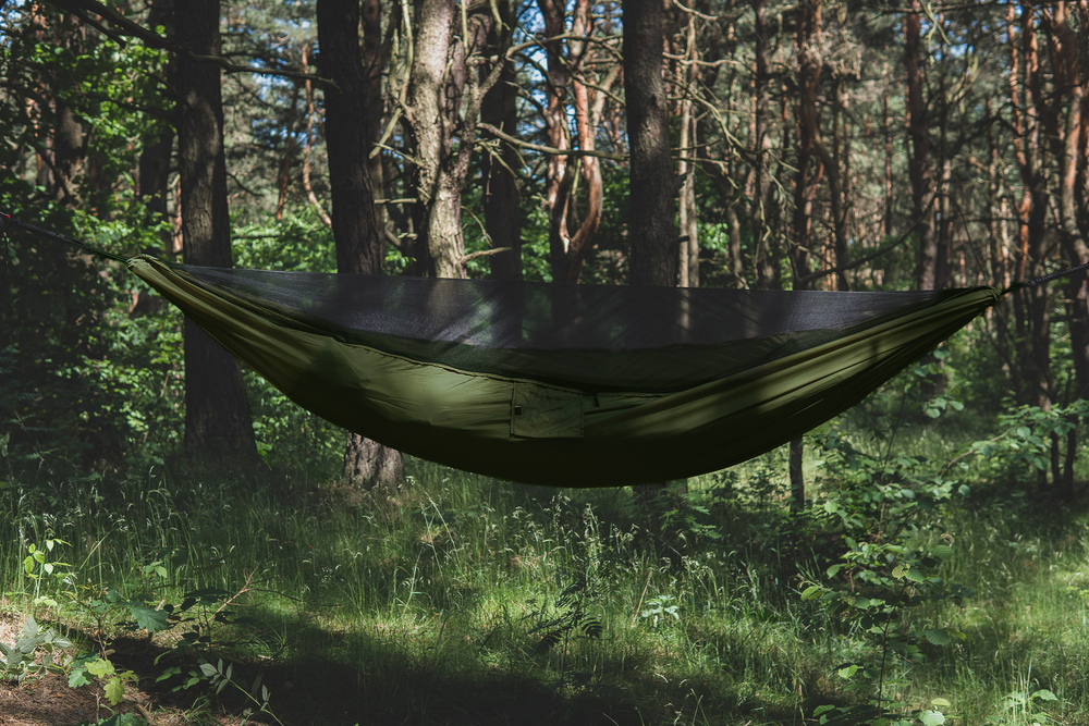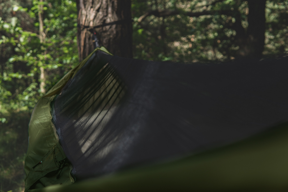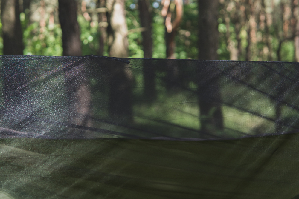 Zintegrowana moskitiera, o ściegu poniżej 1mm, zapewnia odpoczynek wolny od insektów. Natomiast elastyczność i wytrzymałość całej konstrukcji umożliwia wygodne rozwieszenie hamaka do 7 metrów między drzewami.