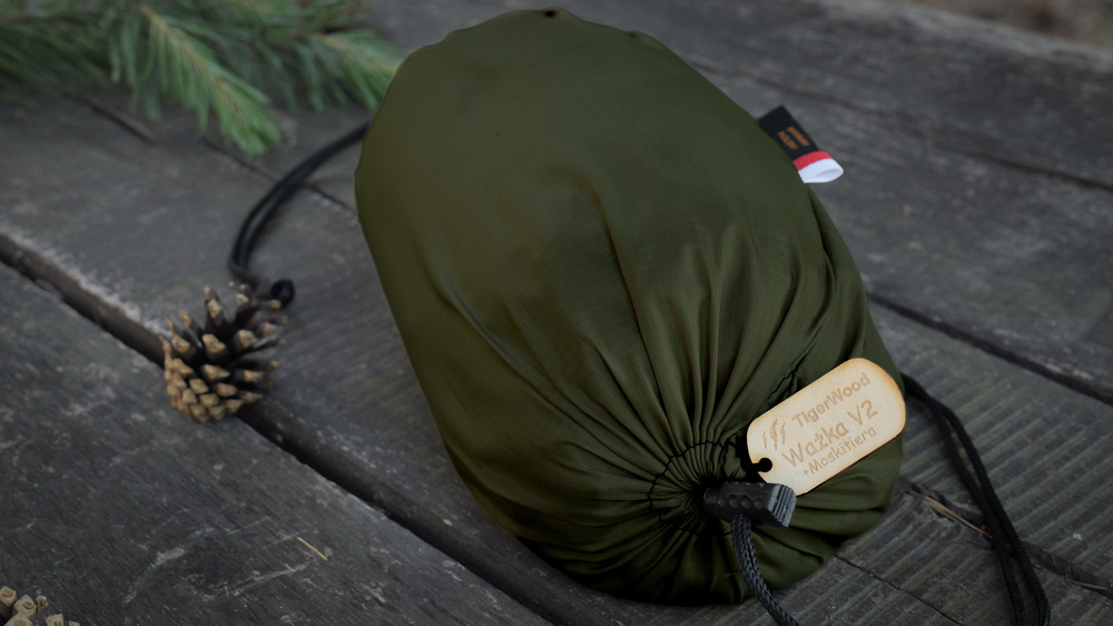 Dzięki wykorzystaniu materiału typu „ripstop” zapewnia idealne połączenie wytrzymałości przy minimalnej wadze. Ważka V2, ważąc jedyne 590 gram, zachowuje udźwig aż do 275 kilogramów. W skład zestawu wchodzi również cięciwa regulowana, na której jest rozwieszona moskitiera. Takie rozwiązanie znacznie ułatwia samo rozwieszenie hamaka, jak również jego późniejszą regulację, taż żeby było nam jak najwygodniej.