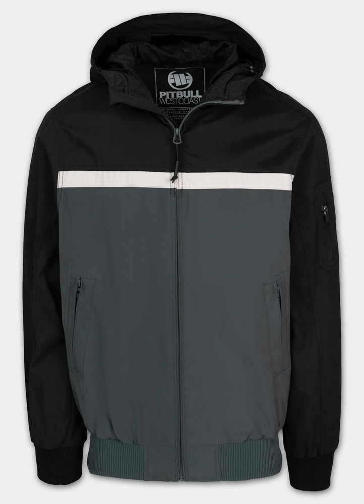 Kurtka przejściowa męska z kapturem PIT BULL "2 Color Longwood" - czarny/off-white/szary