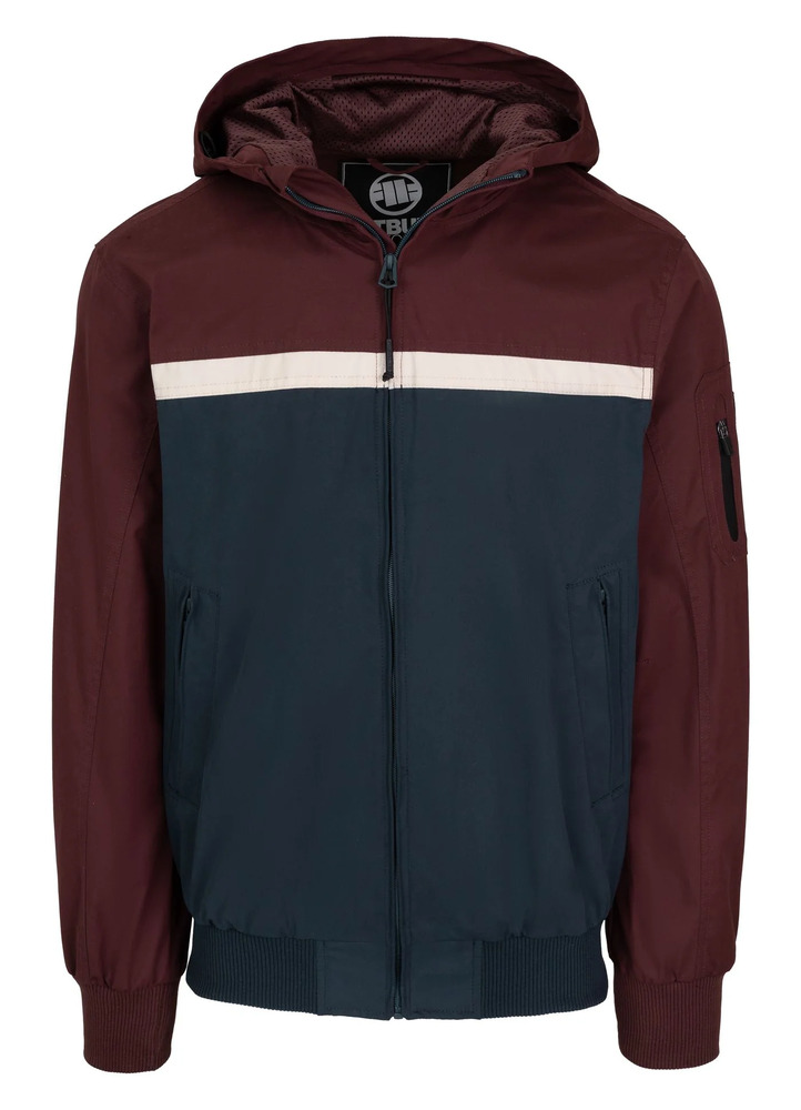 Kurtka przejściowa męska z kapturem PIT BULL "2 Color Longwood" - bordowy/off-white/granatowy