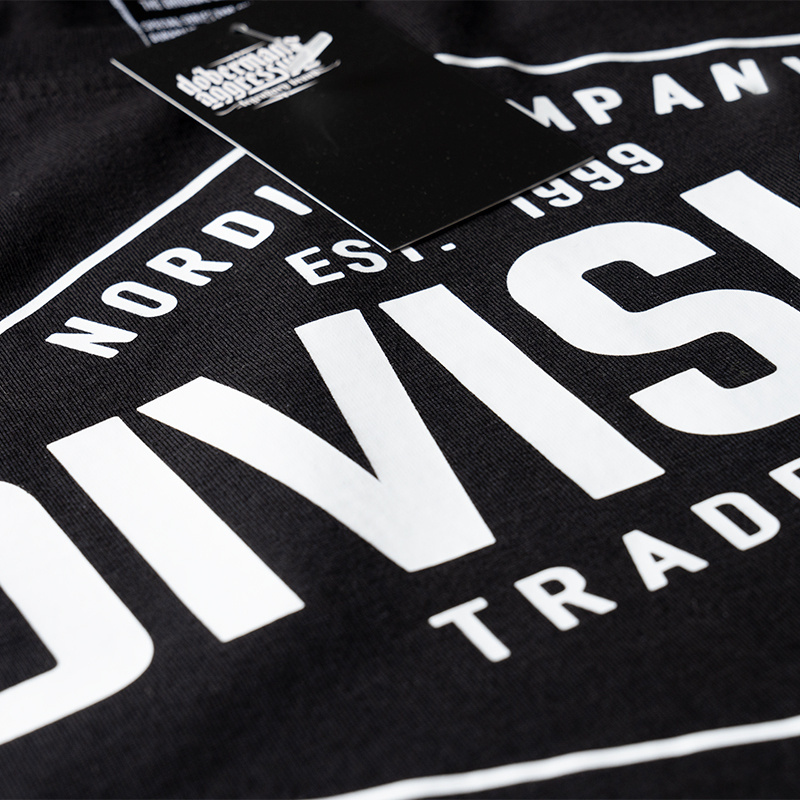 Na klatce piersiowej duży nadruk w stylu vintage z nazwą linii „Division” i hasłem „Nordic Company Trademark”. Koszulka wykonana z wysokogatunkowej bawełny, przyjemna w dotyku i trwała w użytkowaniu. Nadruk został naniesiony metodą sitodruku.