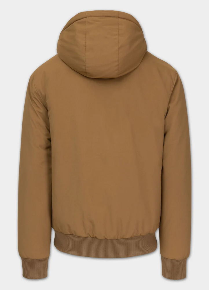 - ocieplany zintegrowany kaptur regulowany sznurkami ze skórzanymi stoperami