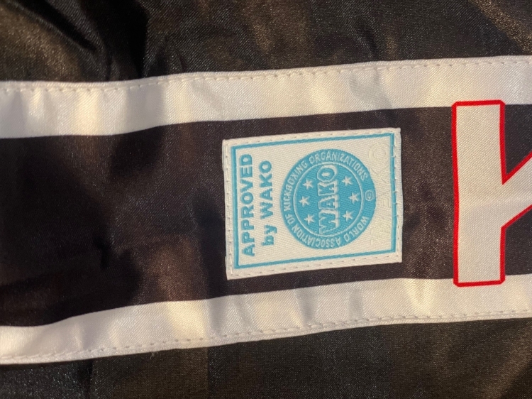 Długie spodnie do kickboxingu. Doskonale sprawdzą się podczas najważniejszych zawodów czy treningów. Szeroka guma w wyróżniającym się kolorze i wewnętrzne sznurki utrzymują spodnie we właściwym miejscu. Bardzo duży klin pozwala na większą swobodę ruchu i wygodę przy noszeniu suspensora. Naszywka z logo WAKO z boku nogawki - posiadają atest do startu w zawodach kickboxingu.