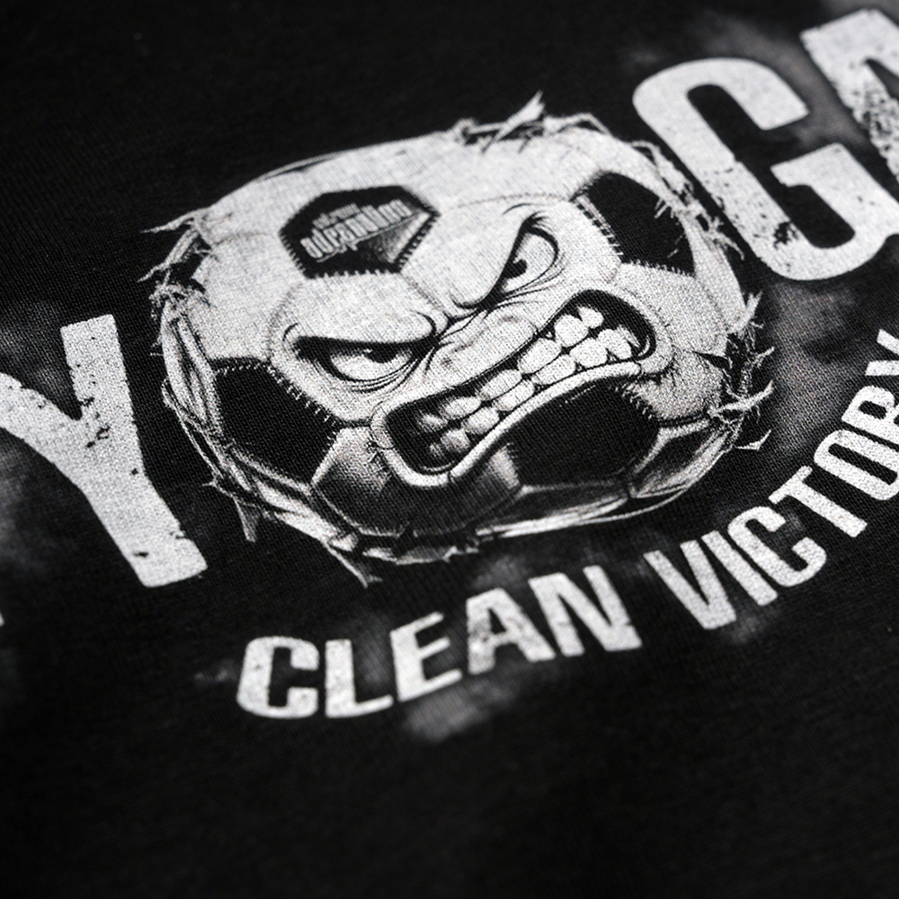 Front koszulki zdobi czytelne hasło „Dirty Game, Clean Victory” przeplatane motywem „wściekłej” piłki nożnej, co stanowi subtelną zapowiedź tego, co dzieje się na plecach. Tył to duża, szczegółowa grafika antropomorficznej piłki o agresywnym wyrazie twarzy, która dominuje na łopatkach, otoczona dynamicznym napisem z nazwą marki oraz przewodnim motywem „Dirty Game, Clea Victory”.