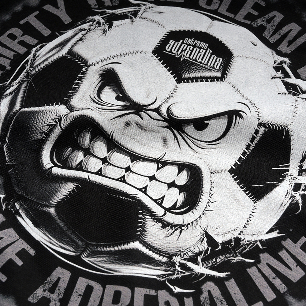 Front bluzy zdobi czytelne hasło „Dirty Game, Clean Victory” przeplatane motywem „wściekłej” piłki nożnej, co stanowi subtelną zapowiedź tego, co dzieje się na plecach. Tył to duża, szczegółowa grafika antropomorficznej piłki o agresywnym wyrazie twarzy, która dominuje na łopatkach, otoczona dynamicznym napisem z nazwą marki oraz przewodnim motywem „Dirty Game, Clea Victory”.