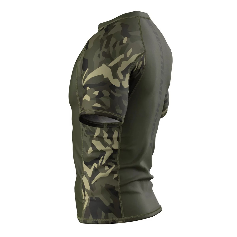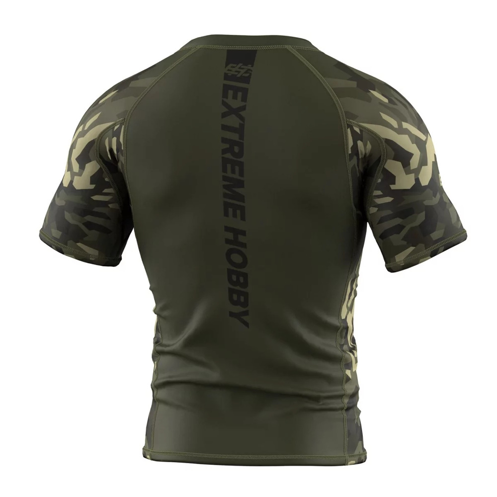 Termoaktywna koszulka męska z krótkim rękawem typu rashguard. Idealna do sportów walki, na siłownię oraz wszędzie tam gdzie zwykłe koszulki bawełniane nie zapewniają należytej ochrony i komfortu.