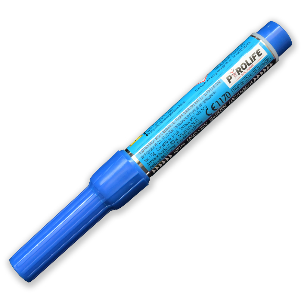 Profesjonalna flara bengalska o intensywnym, niebieskim świetle. Produkt charakteryzuje się wysoką jakością wykonania oraz gęstym, soczystym kolorem płomienia, który jest widoczny nawet w trudnych warunkach atmosferycznych.
