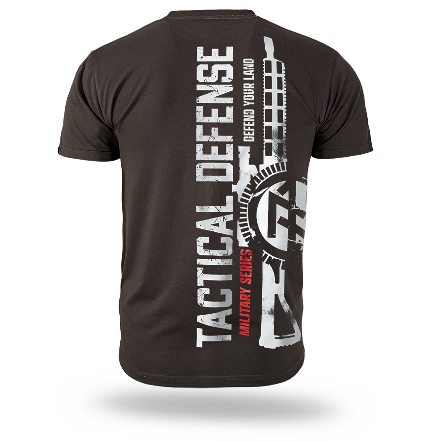Model Tactical Defense TS399A od renomowanej marki Dobermans Aggressive to propozycja odzieży klasy premium, stworzona dla wymagających użytkowników ceniących militarny design. Koszulkę charakteryzuje prosty, klasyczny krój, który nie ogranicza mobilności. Na froncie umieszczono dyskretny emblemat z motywem czaszki i skrzyżowanej broni. Prawdziwy charakter odzieży ujawnia się jednak na plecach, gdzie dominuje potężna, dynamiczna grafika z karabinem taktycznym i pionowym hasłem „Defend Your Land”. To sprzęt, który doskonale oddaje zdecydowany charakter właściciela.