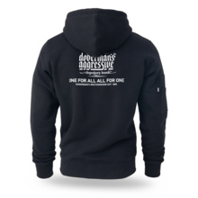 Męska bluza Dobermans Aggressive LEGANCY BZ403 uszyta z wysokogatunkowej dzianiny, gwarantująca maksymalną wygodę i trwałość podczas codziennego noszenia. Wyposażona w solidny zamek błyskawiczny na całej długości oraz regulowany kaptur ze sznurkami, stanowi niezwykle funkcjonalny element odzieży ulicznej. Z przodu znajdują się praktyczne kieszenie typu kangur, a na rękawie umieszczono dodatkową kieszeń zapinaną na zamek z charakterystyczną zawieszką. Przód zachowuje minimalizm – na piersi widnieje jedynie subtelne logo marki. Prawdziwy, zdecydowany charakter ukazuje tył bluzy, gdzie dominuje większy nadruk z logotypem „Doberman’s Aggressive – legendary brand”. Całość uzupełnia mocne hasło „One for all, all for one – Doberman’s Brotherhood est. 1999”, idealnie podkreślające tożsamość, braterstwo i uliczny styl marki.