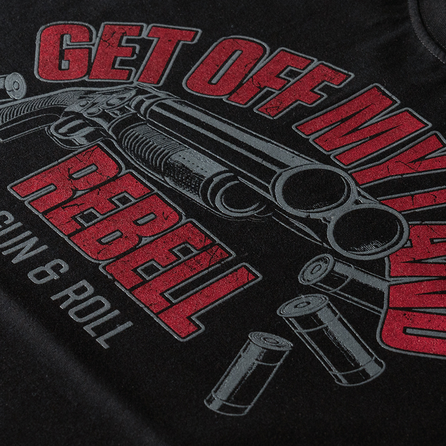 Model Rebell w wersji klasycznej to fundament męskiej garderoby dla osób ceniących wyrazisty, drapieżny styl. Na froncie dominuje potężny nadruk „GET OFF MY LAND REBELL – GUN & ROLL”, który nadaje całości mocnego, buntowniczego wyrazu. Wykonanie z wysokiej jakości bawełny z dodatkiem elastanu zapewnia maksymalny komfort oraz pełną swobodę ruchów w każdej sytuacji. To idealna propozycja dla każdego, kto chce podkreślić swój zdecydowany, miejski charakter w minimalistycznym wydaniu.