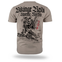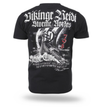 Model Drakkar od marki Dobermans Aggressive to mocne uderzenie w nordycką estetykę, stworzone dla tych, którzy cenią surowy, wojowniczy design. Na plecach wjechał potężny, dopracowany nadruk przedstawiający wikiński drakkar przebijający się przez wzburzone morze w otoczeniu nordyckich symboli i runicznych inskrypcji. Z przodu, na piersi, umieszczono mniejszy motyw „Vikingr Reiði – Nord Storm”, który idealnie dopełnia całą kompozycję. Koszulka posiada klasyczny krój z okrągłym dekoltem wykończonym elastycznym ściągaczem, co gwarantuje trwałość fasonu oraz pełną swobodę ruchów. To rzecz dla osób, które chcą wyrazić swój indywidualizm i pasję do kultury Północy w nowoczesnej, miejskiej formie.
