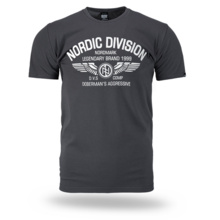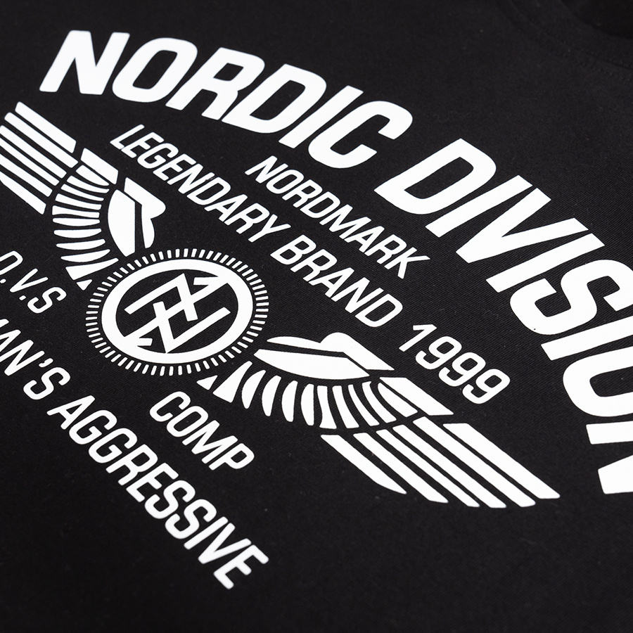 Koszulka N.DIVISION od marki Dobermans Aggressive to konkretny wybór dla fanów nordyckiej stylistyki w codziennym wydaniu. Na przodzie dominuje duży, dopracowany nadruk z napisem „Nordic Division – Nordmark Legendary Brand 1999”, uzupełniony o charakterystyczny motyw skrzydeł i emblemat marki. Koszulka posiada klasyczny fason z okrągłym dekoltem wykończonym elastycznym ściągaczem, dzięki czemu dobrze układa się na sylwetce i zachowuje formę nawet przy częstym użytkowaniu. Wykonanie z miękkiej bawełny gwarantuje wygodę i przewiewność, co sprawia, że model ten idealnie sprawdza się jako fundament miejskiej stylizacji o mocnym, rozpoznawalnym charakterze.