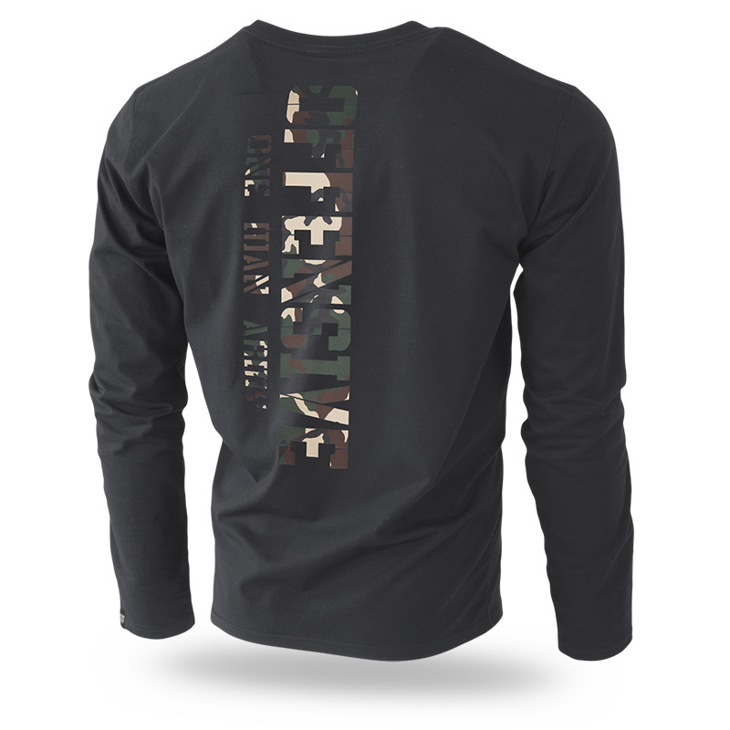 Męski Longsleeve ONE MAN ARMY od marki Dobermans Aggressive to konkretny wybór oparty na bawełnie o wysokiej gramaturze, co przekłada się na realną trwałość i dobre ułożenie na sylwetce. Główny motyw to duży, pionowy nadruk „Offensive One Man Army” w kolorystyce moro, który zajmuje całą linię pleców. Na przodzie, na lewej piersi, umieszczono klasyczne logo Doberman’s Aggressive, a całość uzupełnia mała metka na lewym rękawie. Ten model stawia na surowy, militarny detal i sprawdzony fason, który nie traci formy w codziennym użytkowaniu.