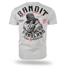 Koszulka BANDITZ od marki Dobermans Aggressive to wyrazista propozycja dla osób ceniących surowy, uliczny design i bezkompromisowy przekaz. Koszulka została wykonana w wygodnym, klasycznym fasonie z okrągłym dekoltem wykończonym elastycznym ściągaczem, co zapewnia komfort noszenia i trwałość materiału. Głównym punktem projektu jest duży, szczegółowy nadruk na plecach, przedstawiający zamaskowaną postać celującą z broni. Grafikę otaczają masywne napisy „Banditz Gangland Crime Syndicate” oraz charakterystyczne detale marki Doberman’s Aggressive, takie jak hasło „Trademark since 1999”, motywy noży oraz czerwone akcenty graficzne. Na przodzie, na wysokości piersi, umieszczono mniejszy, spójny nadruk, który dopełnia całą kompozycję. Ten dynamiczny projekt idealnie wpisuje się w kulturę streetwear, stanowiąc mocny i bezkompromisowy element codziennej stylizacji.