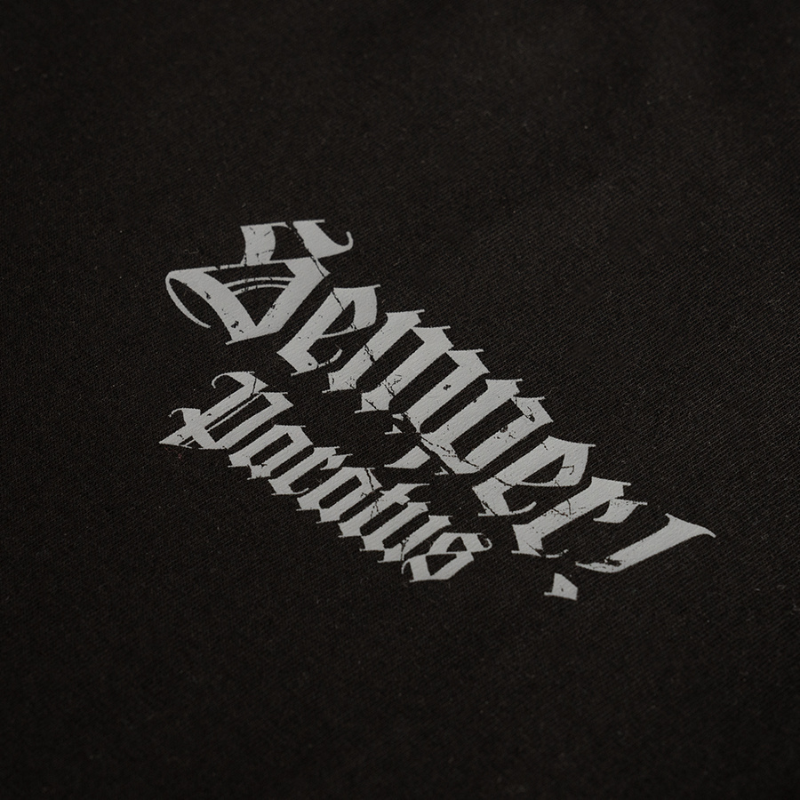 Koszulka SEMPER PARATUS od marki Dobermans Aggressive to propozycja dla osób ceniących wojskową symbolikę i styl marki Doberman’s Aggressive. Koszulka została zaprojektowana w wygodnym, klasycznym fasonie z okrągłym dekoltem, co sprawia, że idealnie nadaje się do codziennego użytkowania. Najważniejszym elementem projektu jest duży, dynamiczny nadruk na plecach. Przedstawia on uzbrojonego wojownika w hełmie z mieczem, otoczonego wyrazistymi napisami w gotyckim stylu: „Semper!”, „Paratus” oraz czerwonym hasłem „Pro Legione”. Na dole kompozycji widnieje dopisek „Spartan MCXCIX”. Z przodu, na klatce piersiowej, umieszczono niewielki, dyskretny nadruk, który spójnie nawiązuje do głównego motywu graficznego.